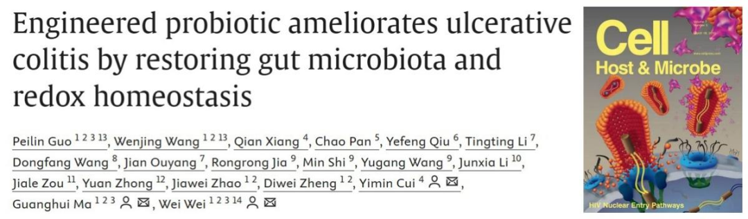 标题:Engineered probiotic ameliorates ulcerative colitis by restoring gut microbiota and redox homeostasis