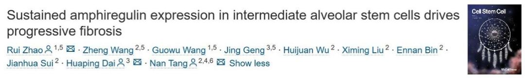 标题:Sustained amphiregulin expression in intermediate alveolar stem cells drives progressive fibrosis