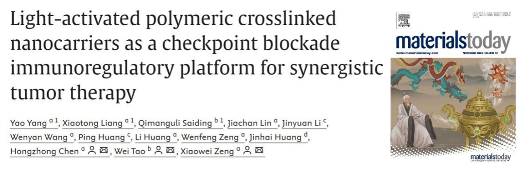 标题:Light-activated polymeric crosslinked nanocarriers as a checkpoint blockade immunoregulatory platform for synergistic tumor therapy